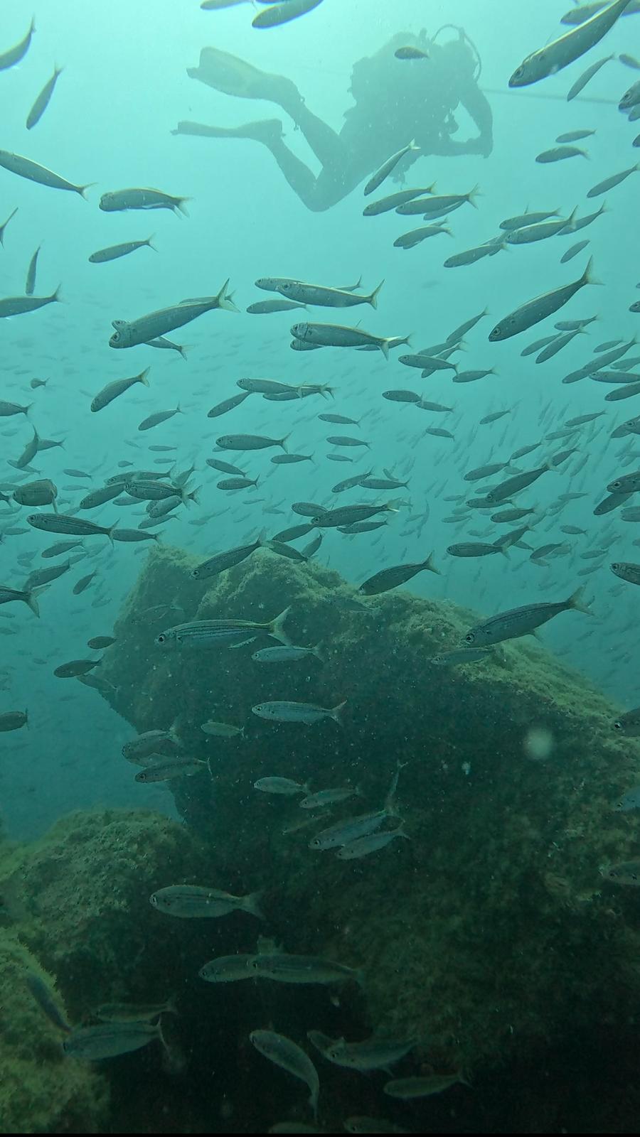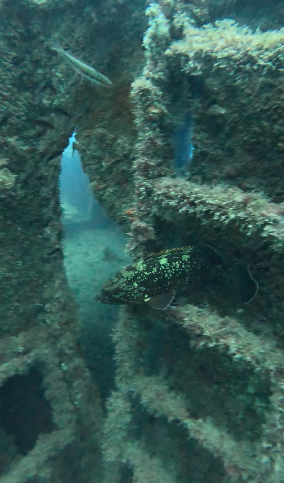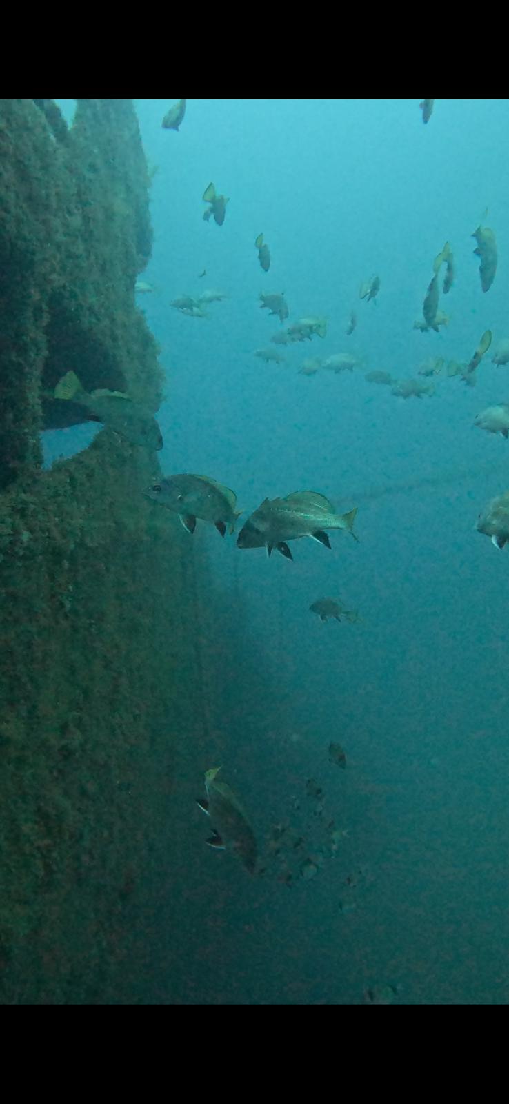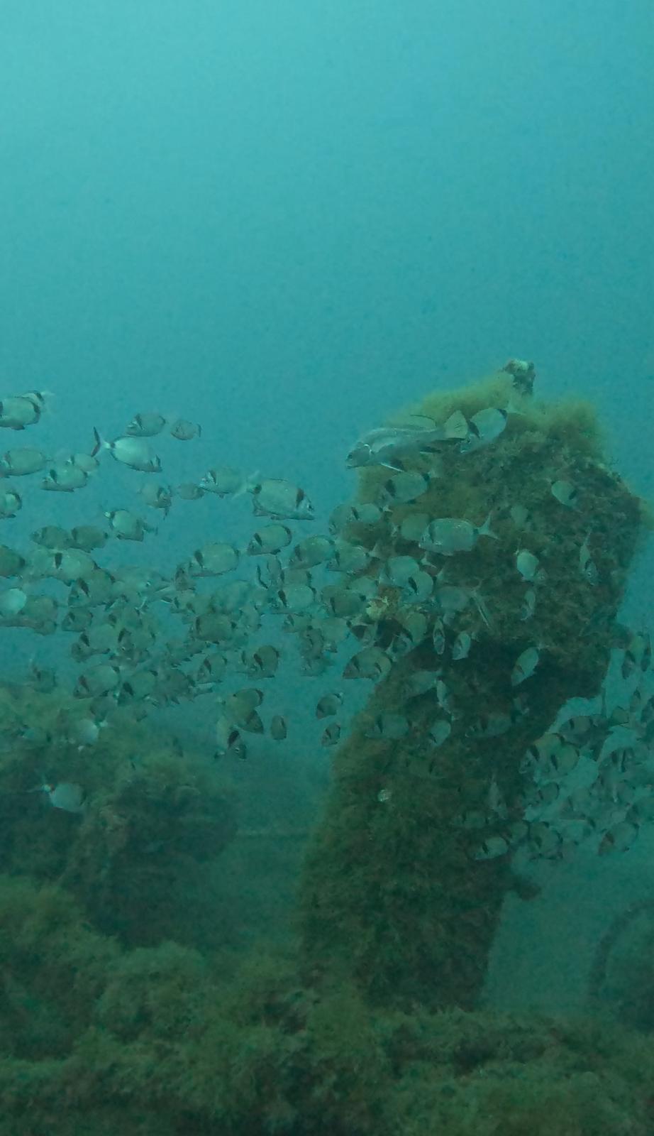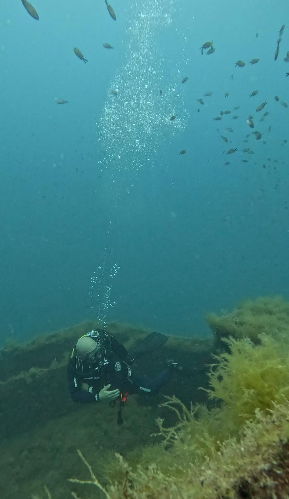 • Meros, congrios, pulpos y bancos de sargos moviéndose entre el casco del pecio.